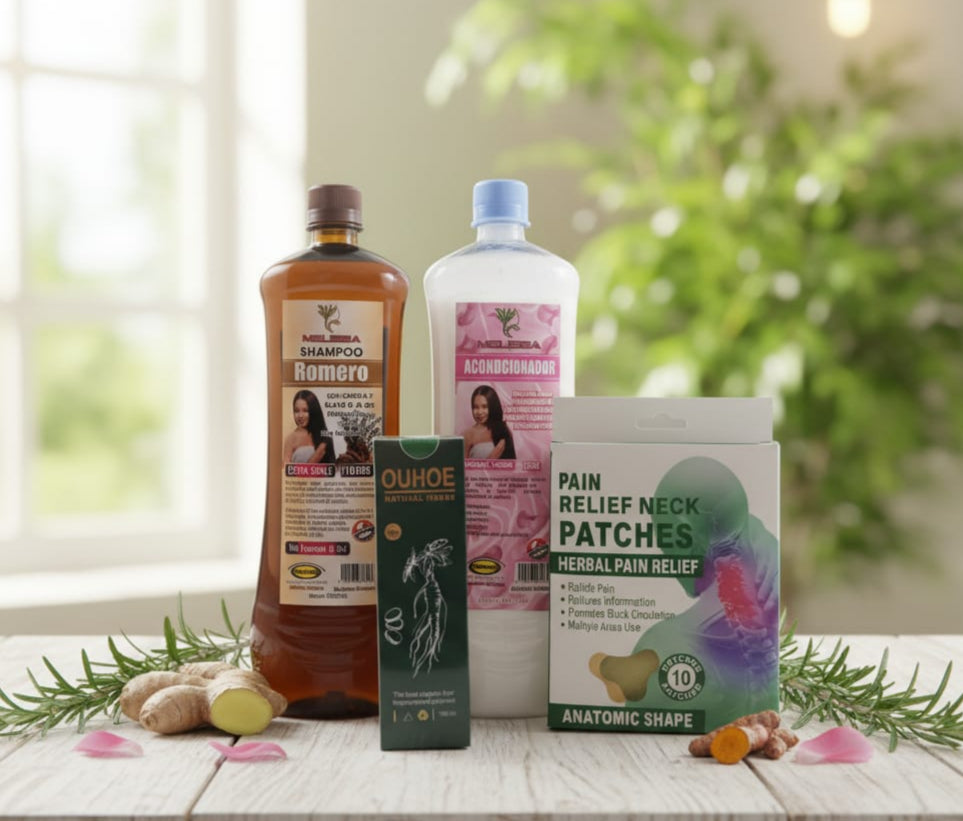 COMBO SHAMPOO DE ROMERO + ACONDICIONADOR + TÓNICO CAPILAR OUHOE + PARCHES ADHESIVOS PARA EL DOLOR DE ESPALDA